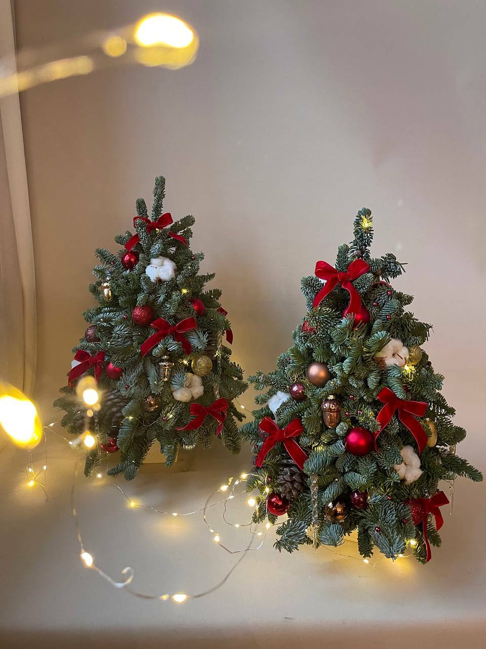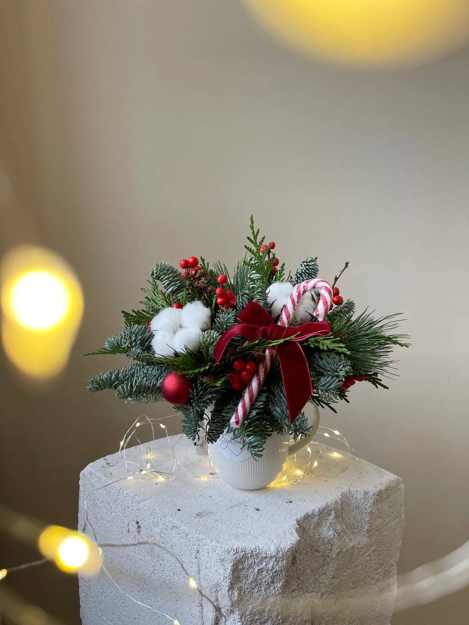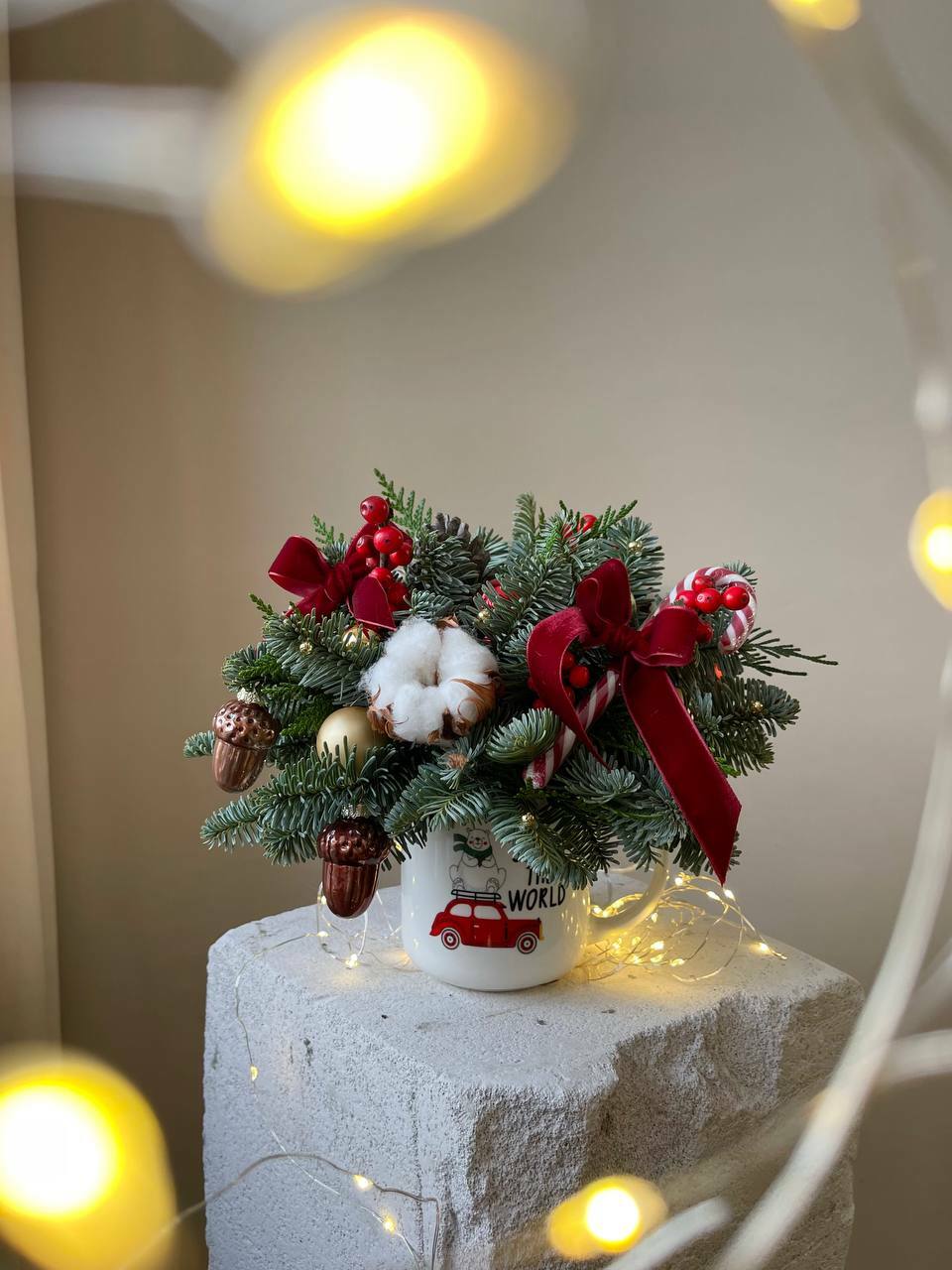 Интерьерные венки, ёлочки, настольные композиции и милые кружечки для праздничного настроения.