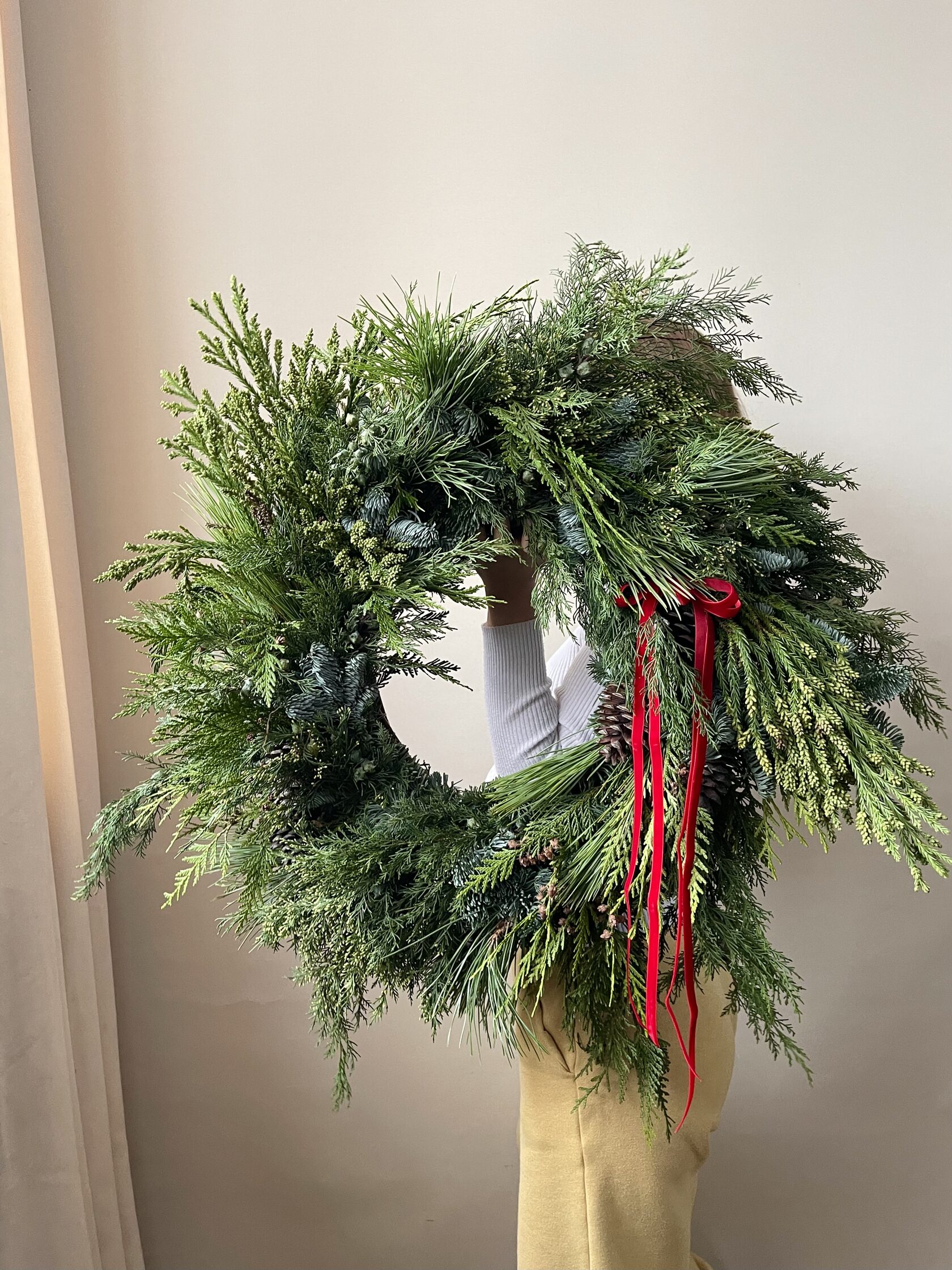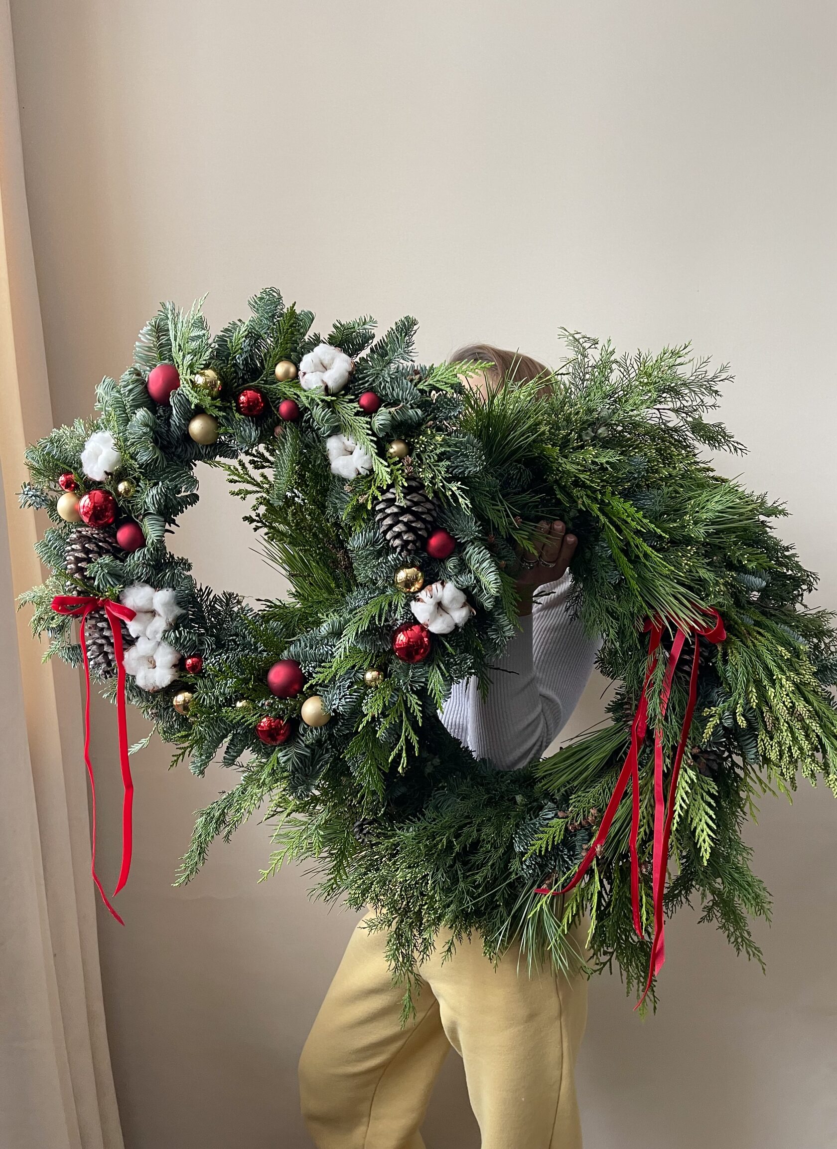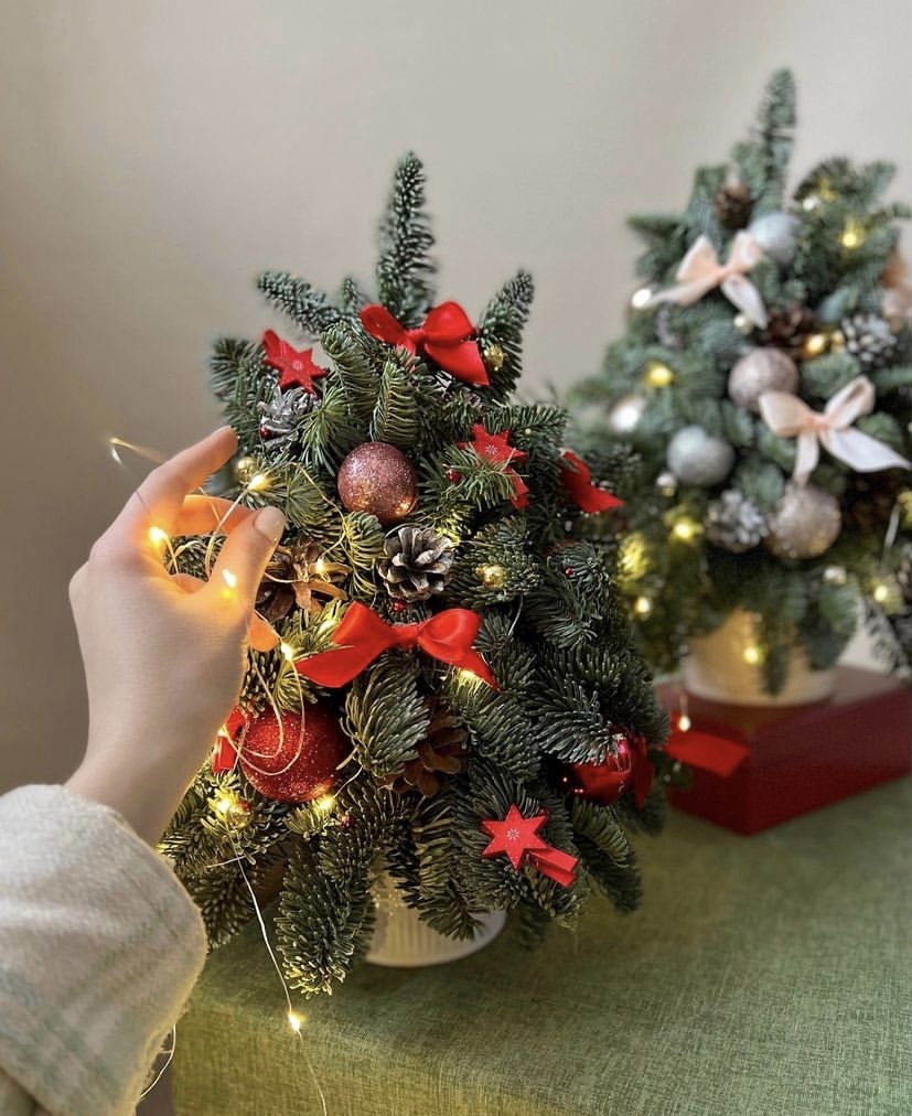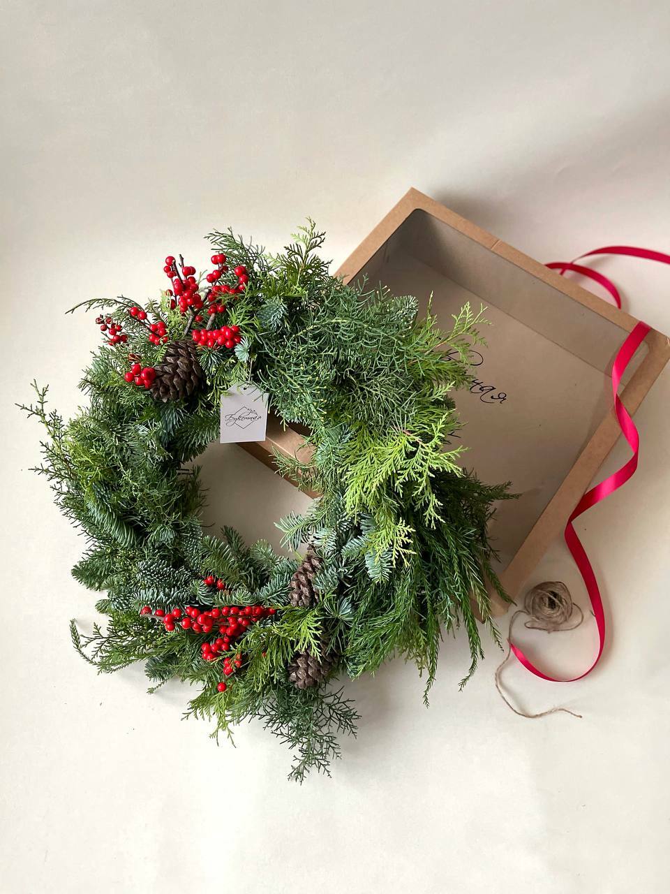 Интерьерные венки, ёлочки, настольные композиции и милые кружечки для праздничного настроения.