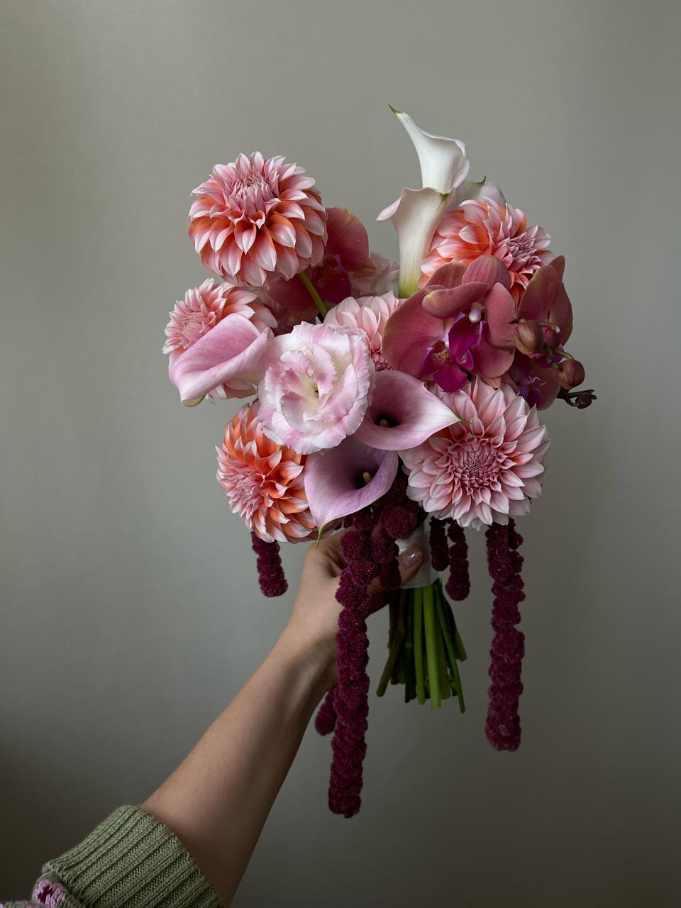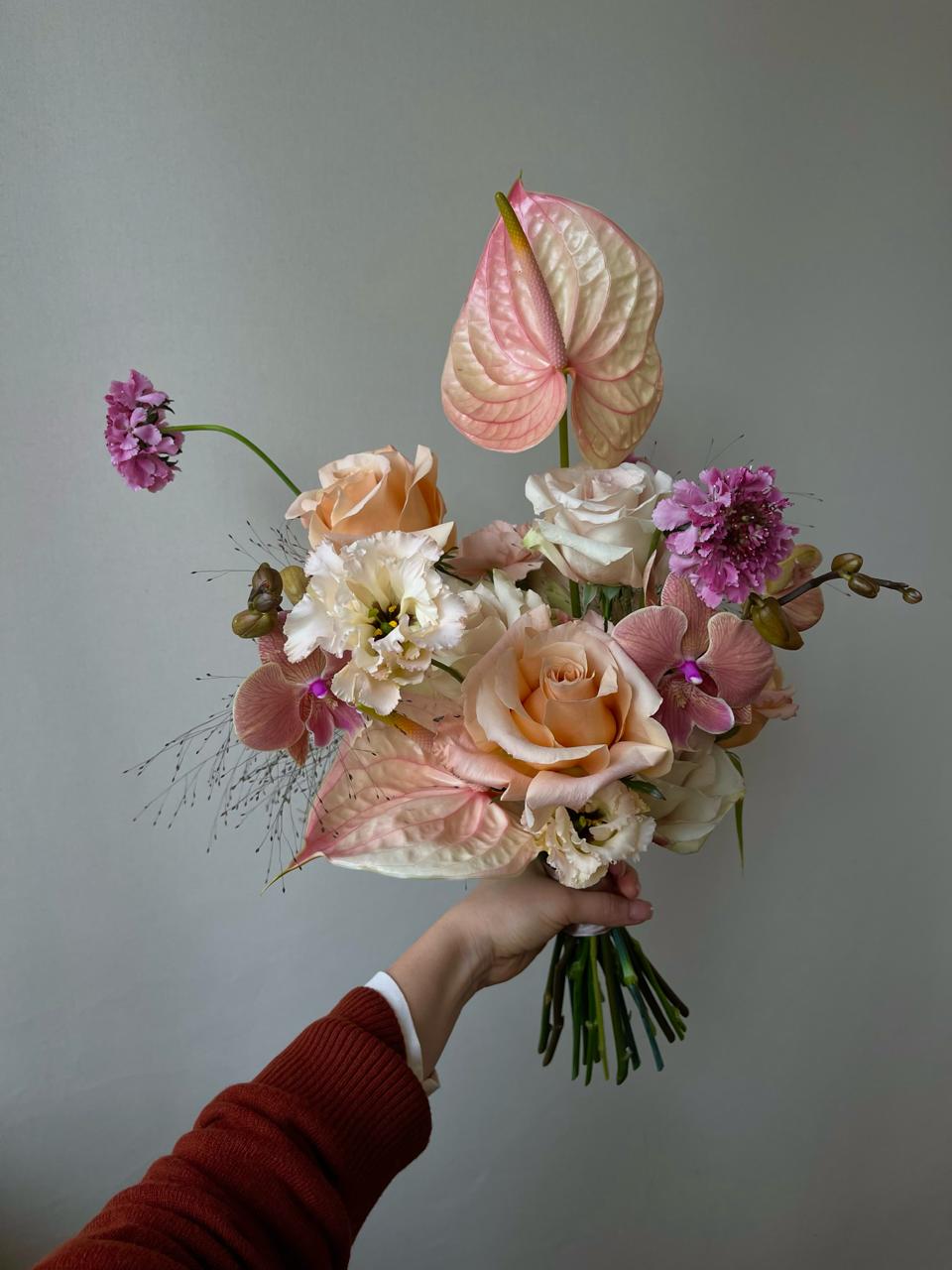 - особый, неповторимый аксессуар невесты, который создается индивидуально под ее образ. Различные формы и текстуры: разноуровневый свободный букет или строгая классика.