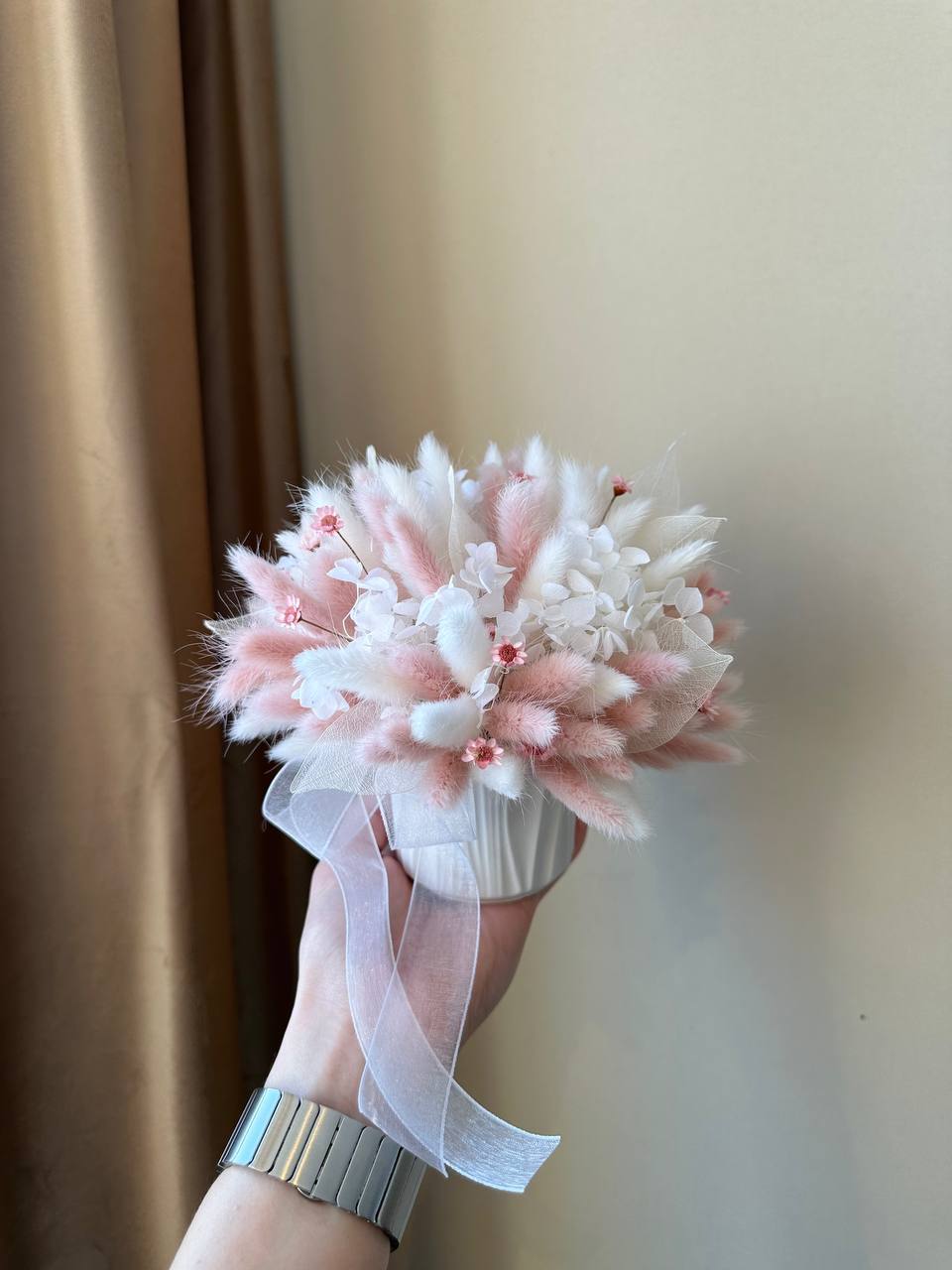 Композиция из сухоцветов - отличный вариант для декора любого пространства, будь то дом или рабочее место. Мы с радостью учтем все Ваши пожелания и соберем композицию, которая долго будет радовать Вас
